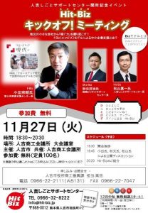 12月中旬開所予定「人吉しごとサポートセンター(通称:Hit-Biz)」の開所前記念イベントと位置付け、Hit-Bizキックオフ!ミーティングを開催いたします。静岡県富士市のエフビズ:小出センター長、愛知県岡崎市のオカビ […]