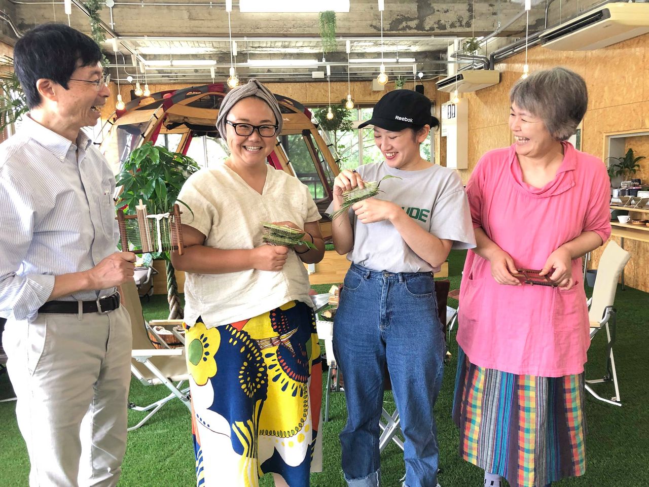今回はプチセミナーということで雑草や植物に興味のある方に参加いただき、初めての「織り」体験。