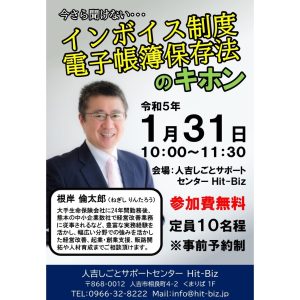 1月31日(火)根岸コーディネーターによるセミナーが 人吉商工会議所で開催されました。 12名の事業者様が参加され インボイス制度によって今後変わることや対応の仕方、 電子帳簿保存法の対策などについて しっ […]